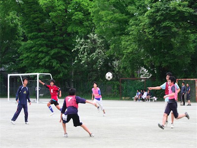 球技種目4種目(男子:バレーボール、ハンドボール、サッカー、バドミントン。女子:フットサル、バレーボール、バスケットボール、バドミントン。バドミントンのみ男女共修)から各自3種目を選択し、1年次に培った能力を基本として、教師主導から徐々に生徒が主体的に活動を実践できるような取り組みを行っています。2年の最後には、グループごとに16時間程度の授業計画を立案し、リーダーを中心に班員全員の協力のもと、運動をコーディネートしていく能力を高めることに主眼を置いて活動しています。