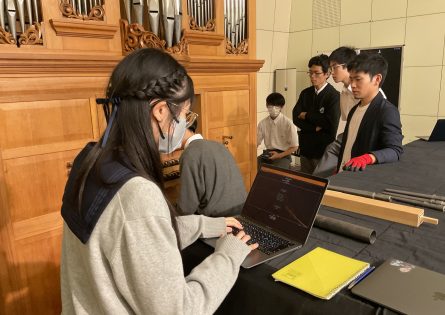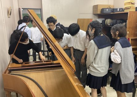 10/11(土)東海大学湘南キャンパスの松本奈穂子先生の研究室を訪問し,パイプオルガンやヴィオラ・ダ・ガンバ,フォルテピアノ,チェンバロ,クラヴィコードなどの古楽器体験を行う特別授業を実施しました。パイプオルガン職人の石井大雅さんに詳しい解説をしていただくとともに,実際にパイプオルガンや古楽器での演奏を体験しました。パイプオルガンから鳴る音の周波数解析を行い,見たことの無い波形に驚く生徒もいました。本SSH特別授業は,松本先生,東海大学・原田亜紀子先生,東京学芸大学・小林晋平先生の共同研究をきっかけに実現しました。本校生徒との探究活動での連携にも,ご期待ください。